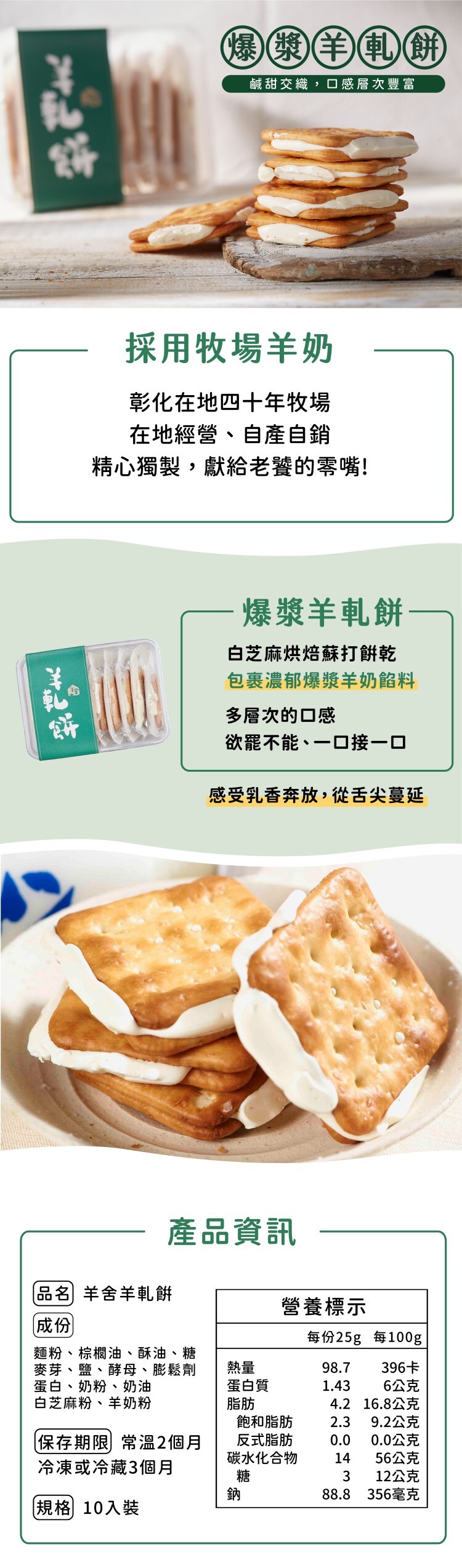 白芝麻烘焙的蘇打餅,包裹爆漿羊奶餡料